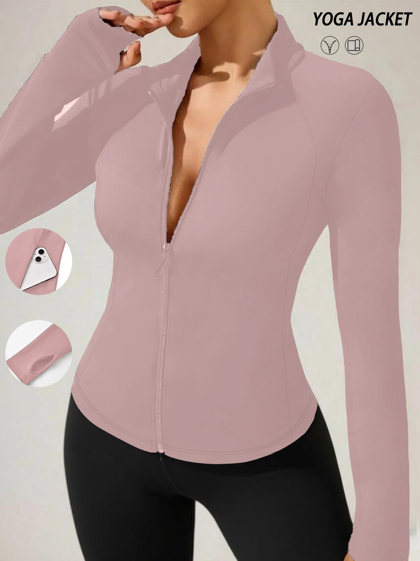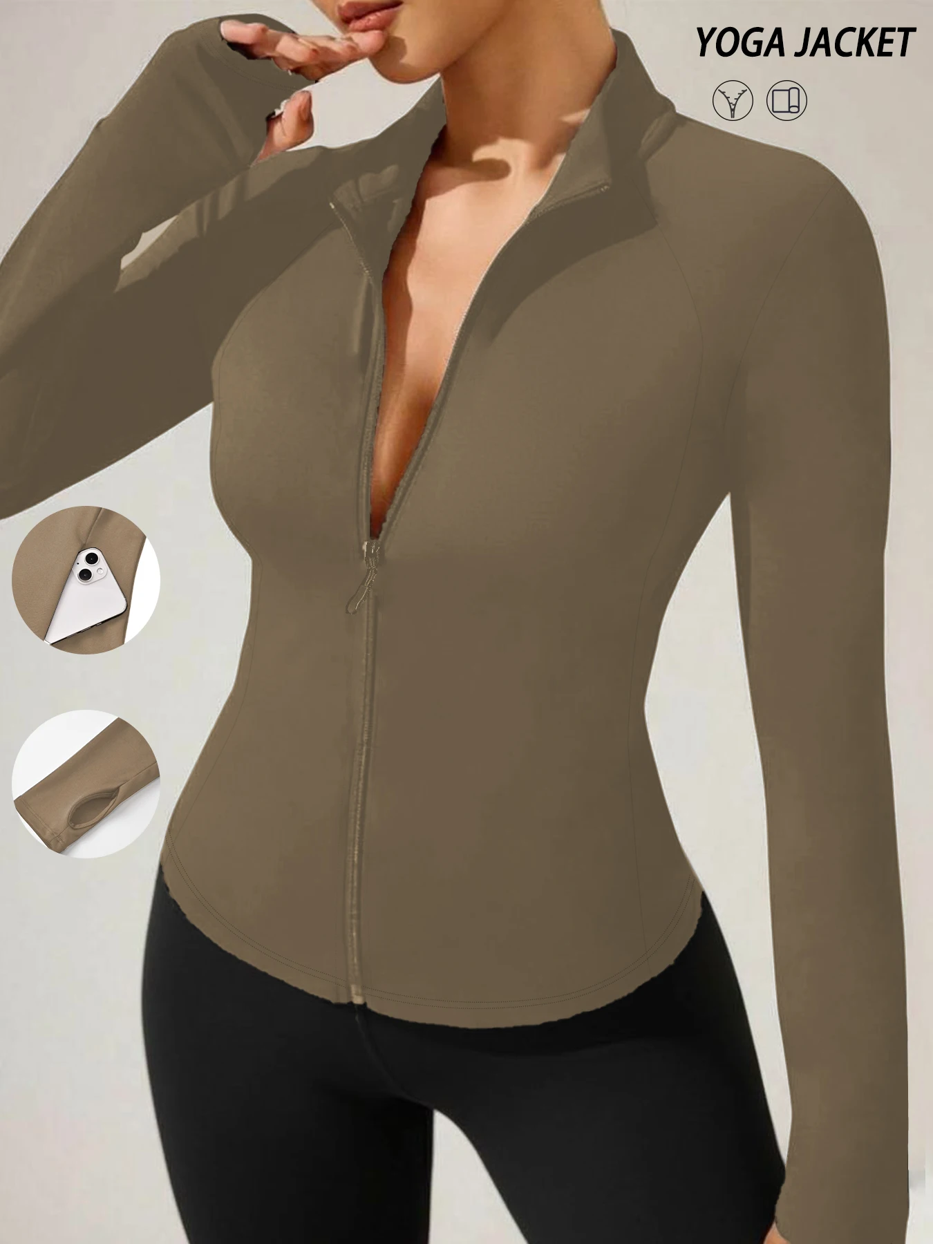 Women’s Full-Zip Yoga Jacket with Thumb Holes – Slim Fit Activewear for Running, Hiking & Workouts
