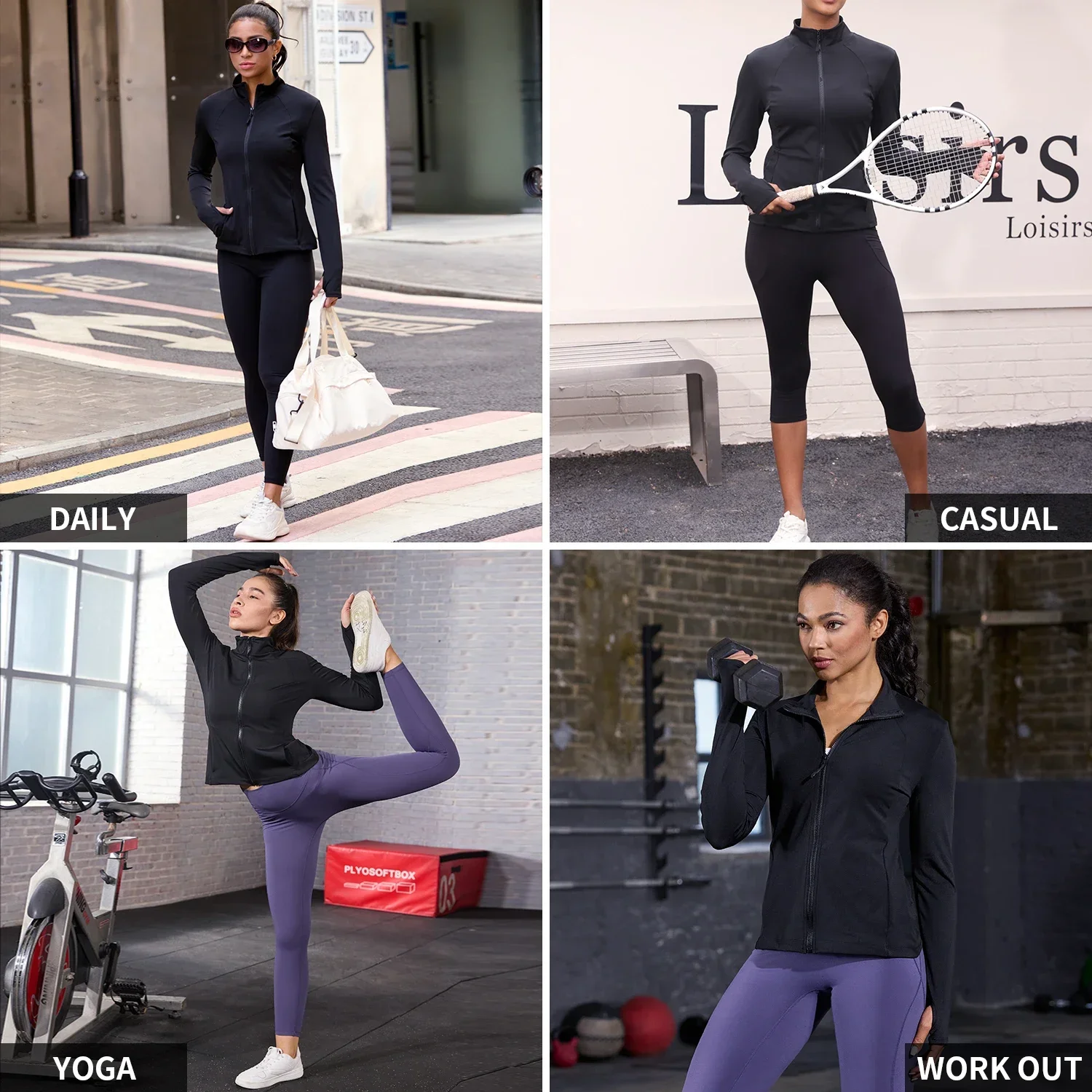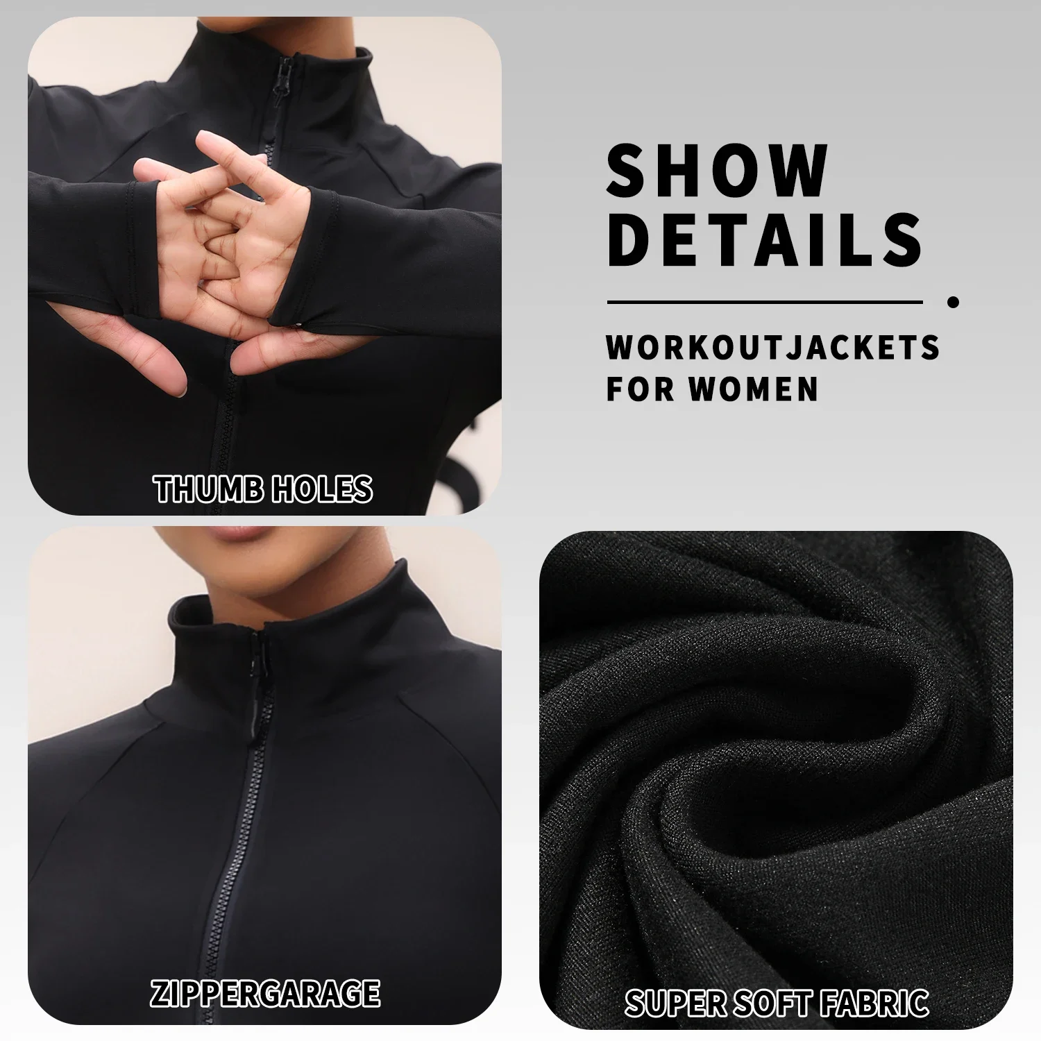 Women's Workout Yoga Jacket Full Zip Thumb Holes & Perfect For Running Hiking & More