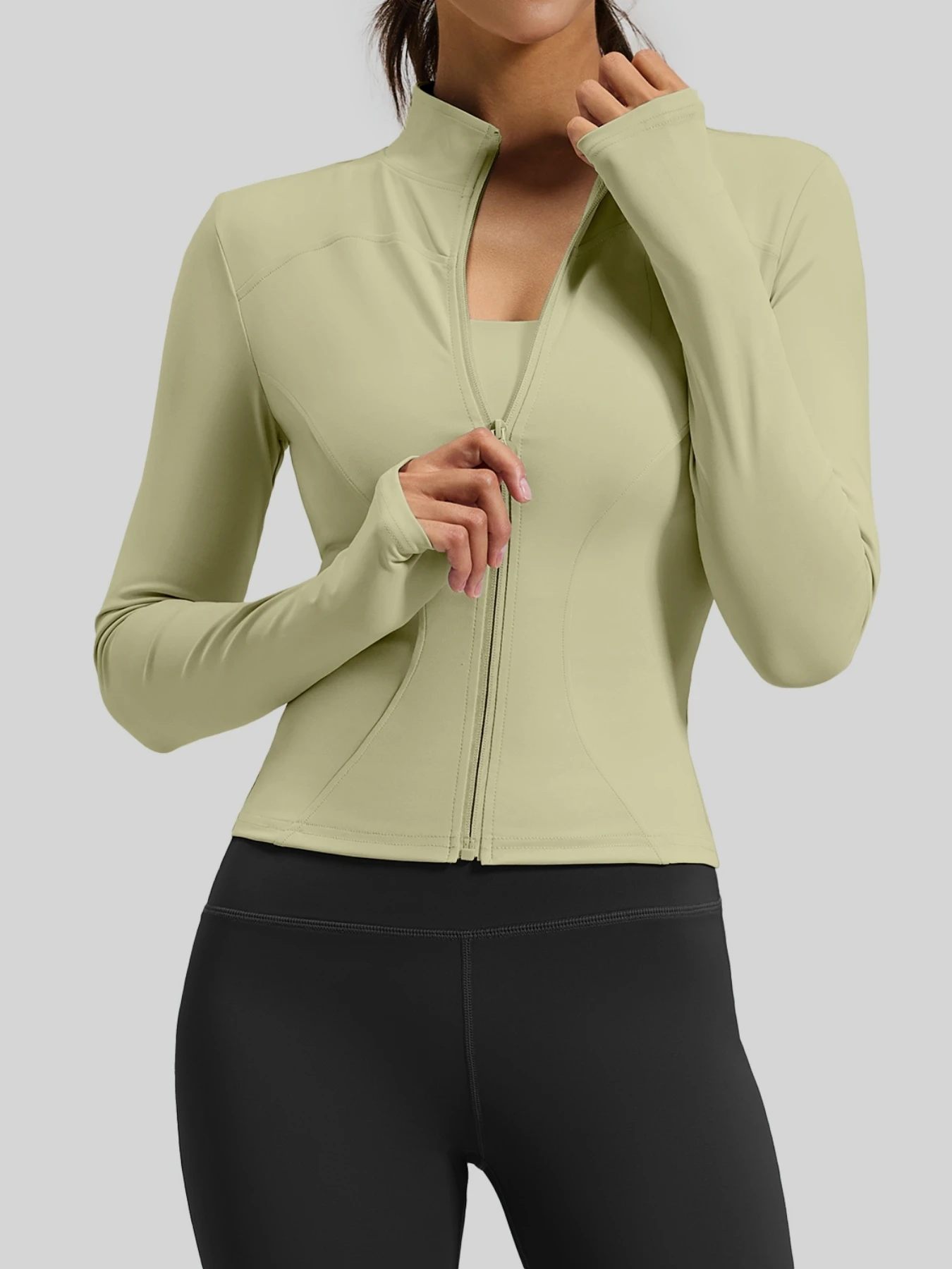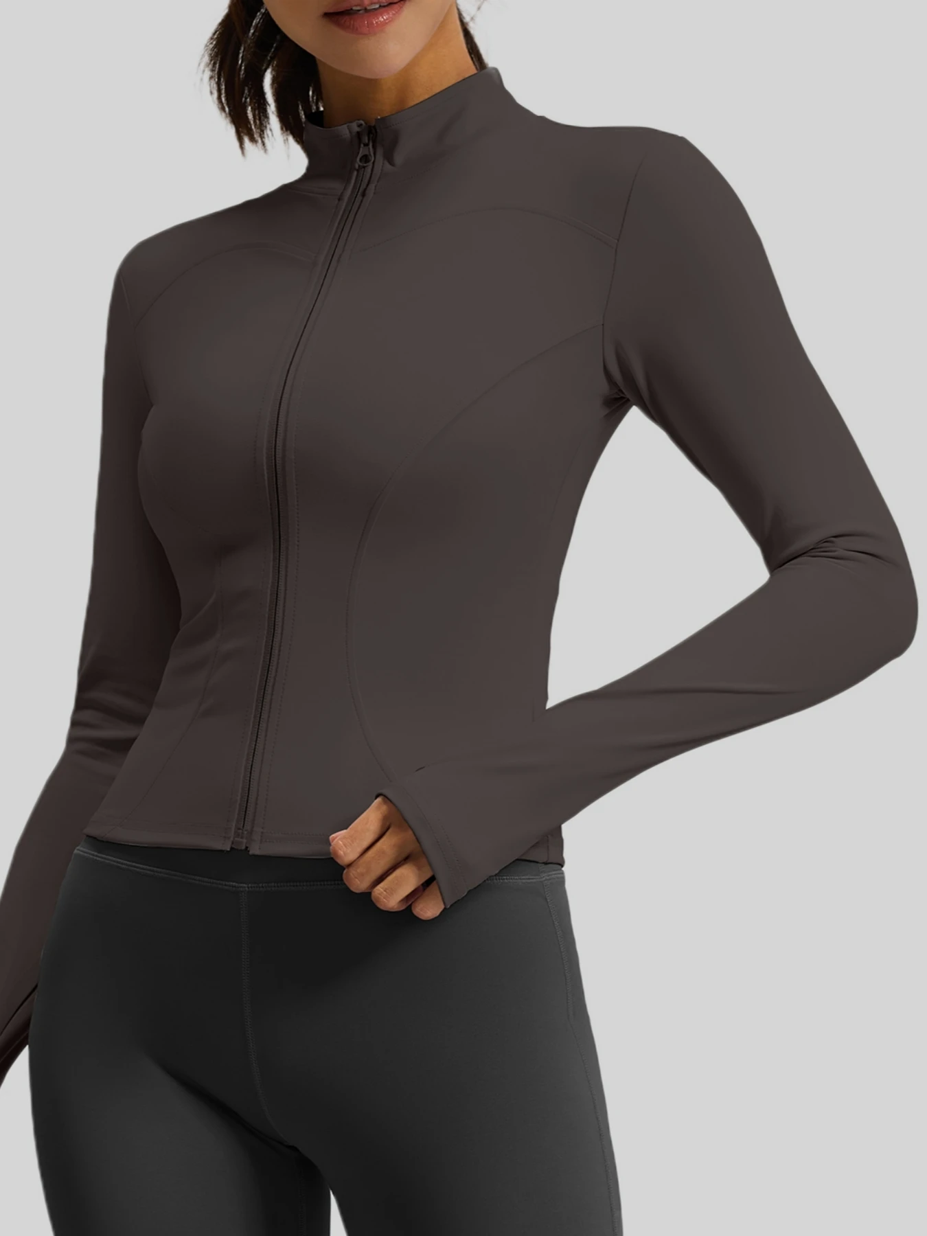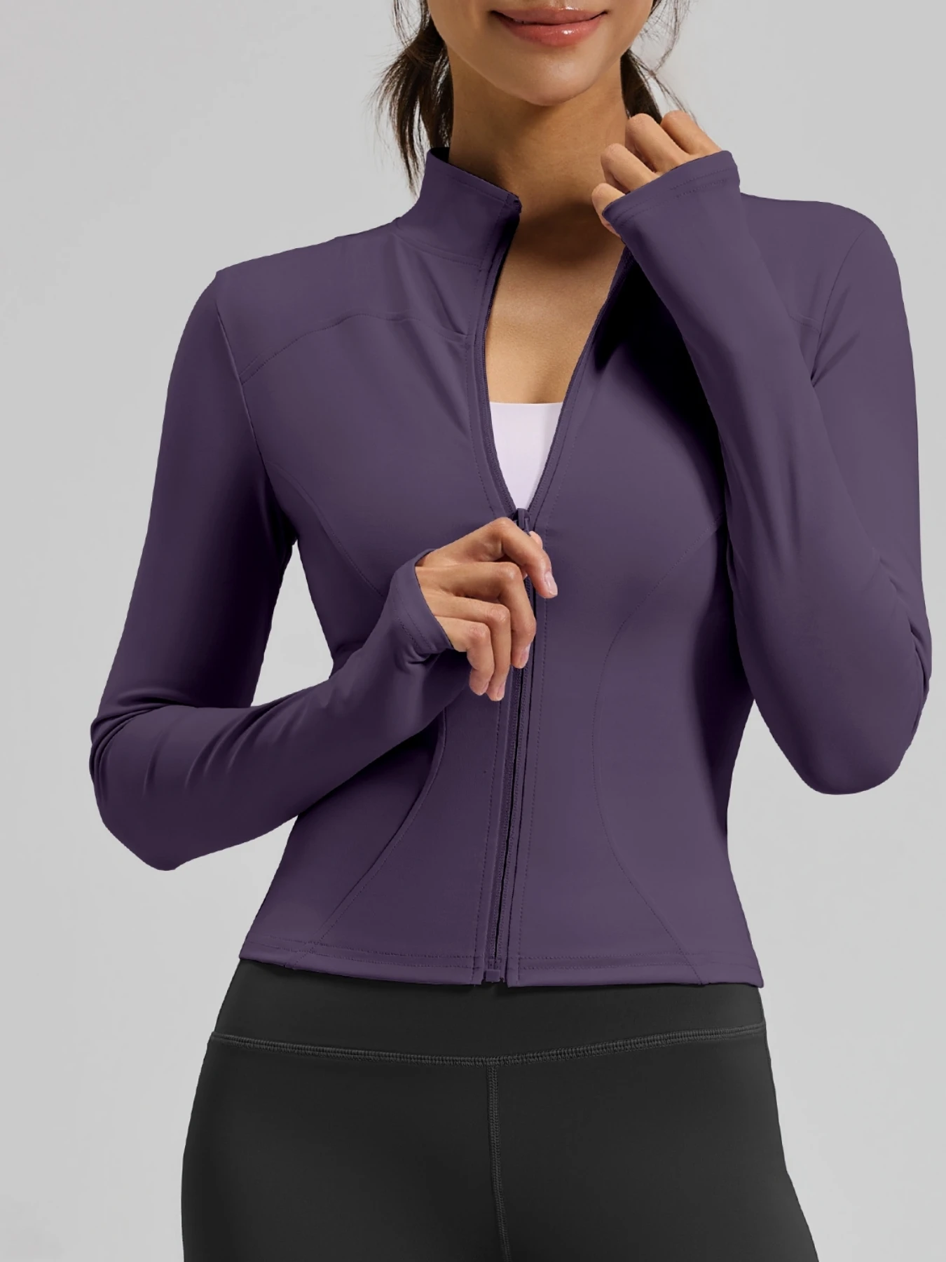 Crafted from stretchy fabric, this yoga jacket offers unrestricted movement for dynamic workouts. The material adapts to your every move, ensuring you can focus on your practice without any hindrance.