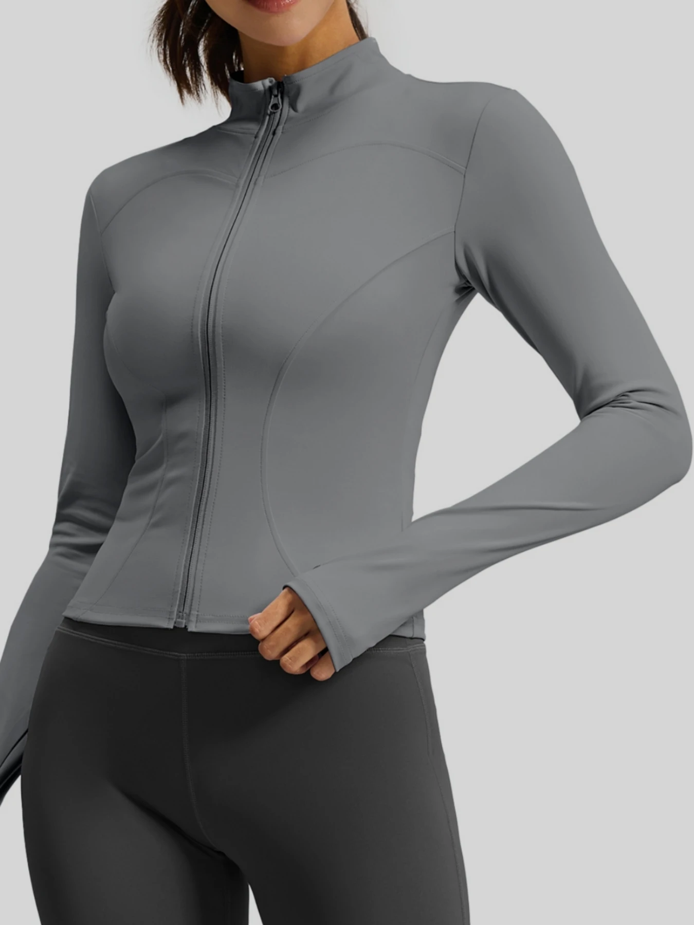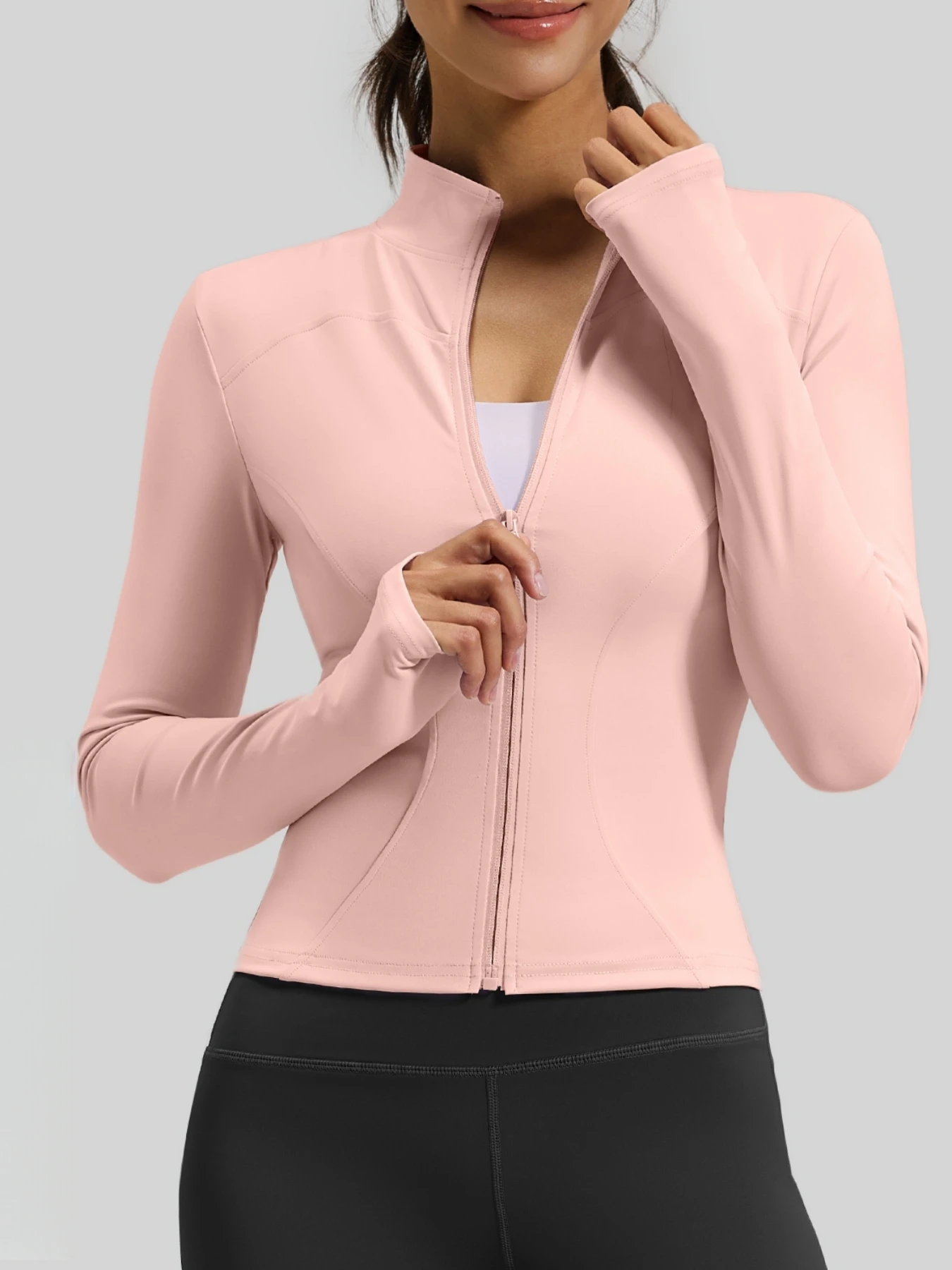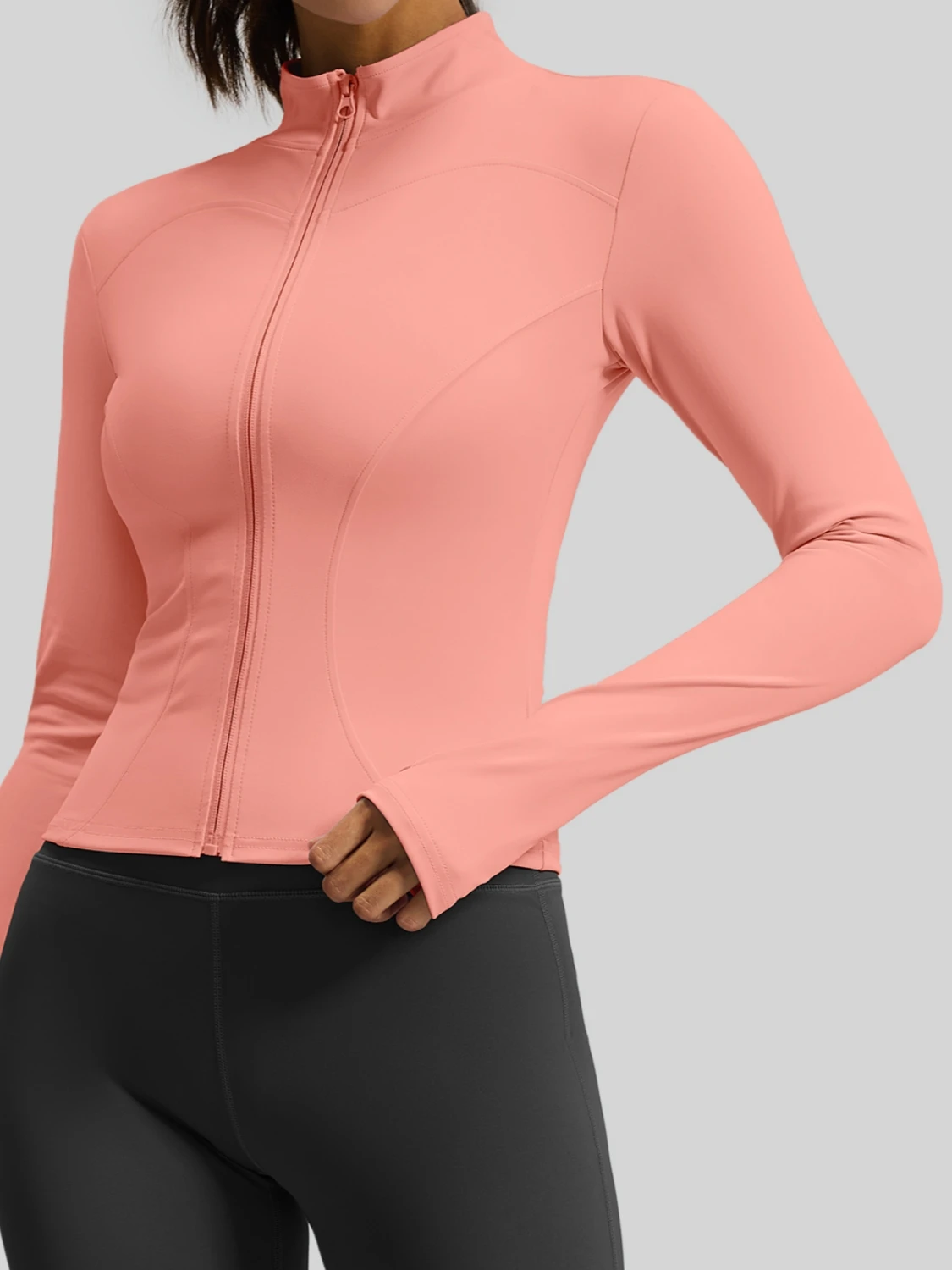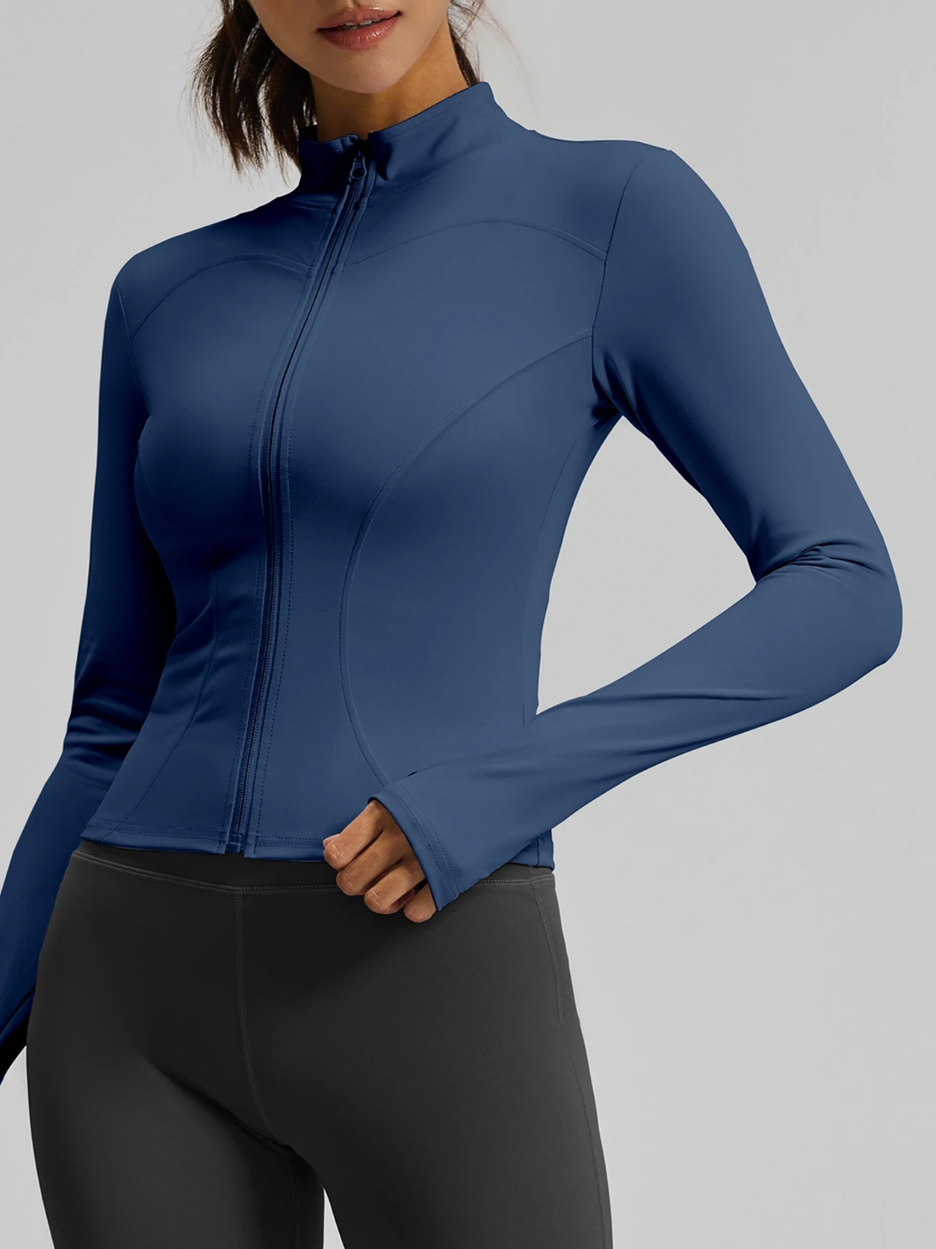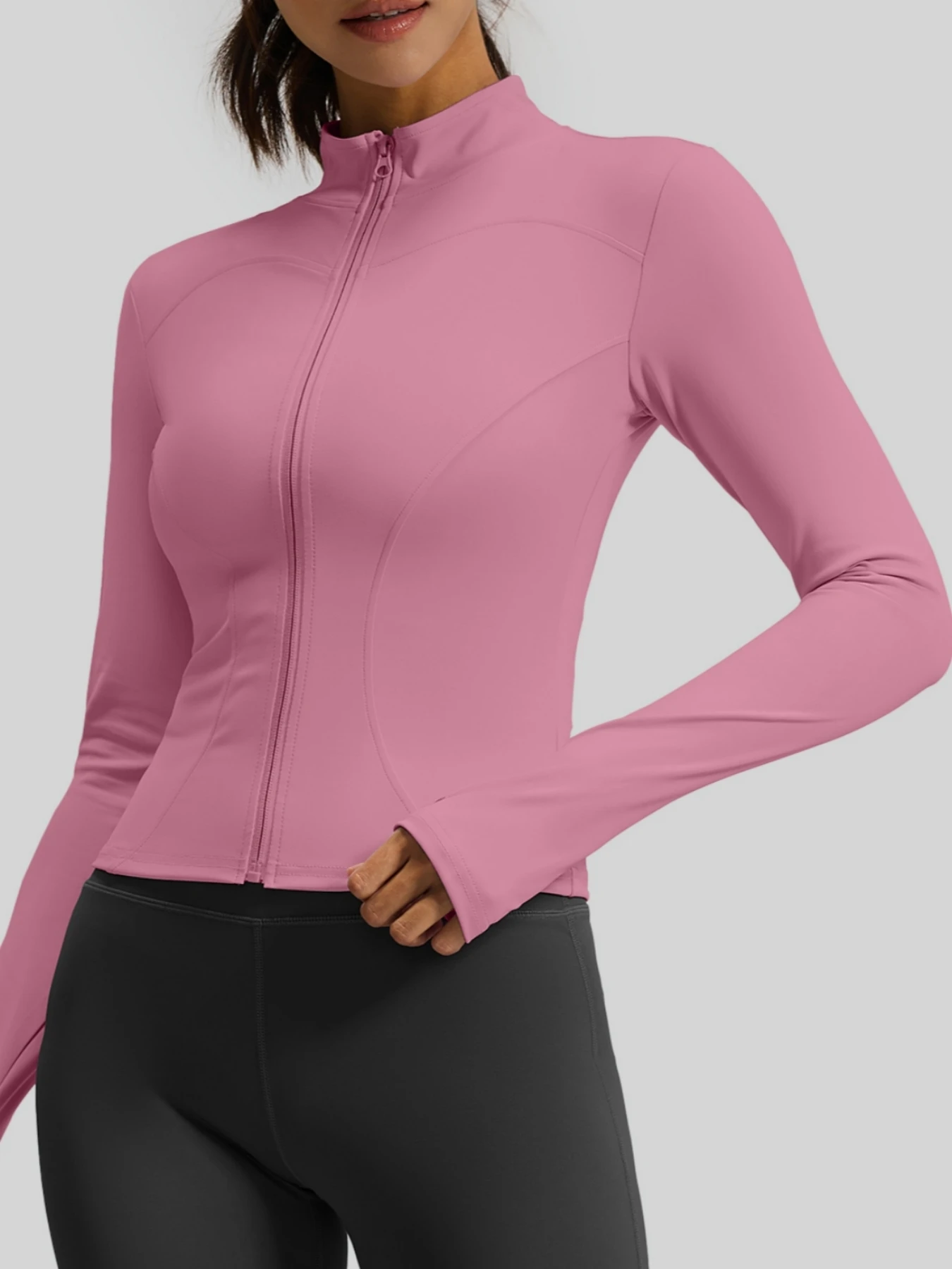 Women’s Zip-Up Sports Jacket with Stand Collar – Slim Fit Activewear for Yoga, Running & Training