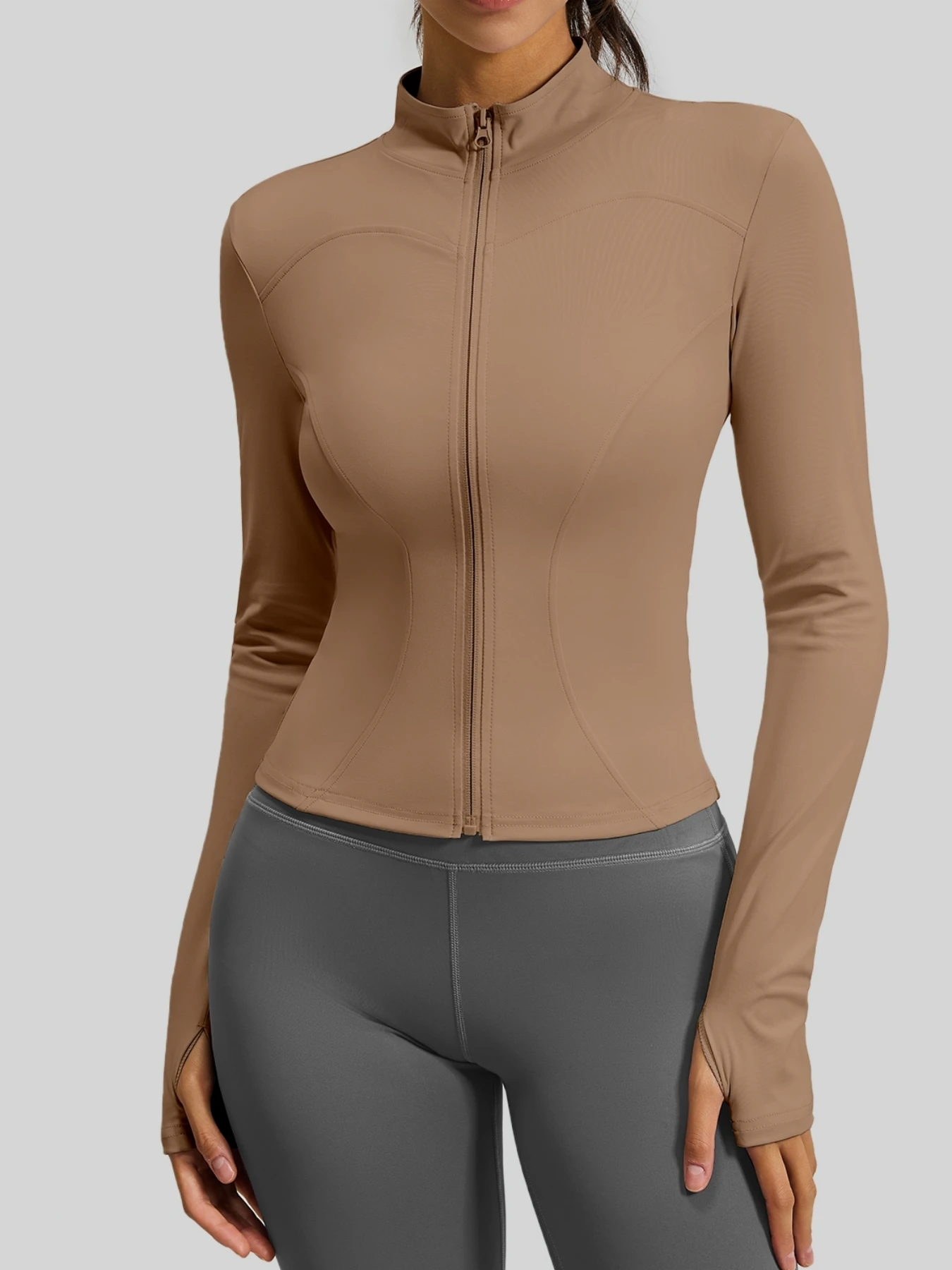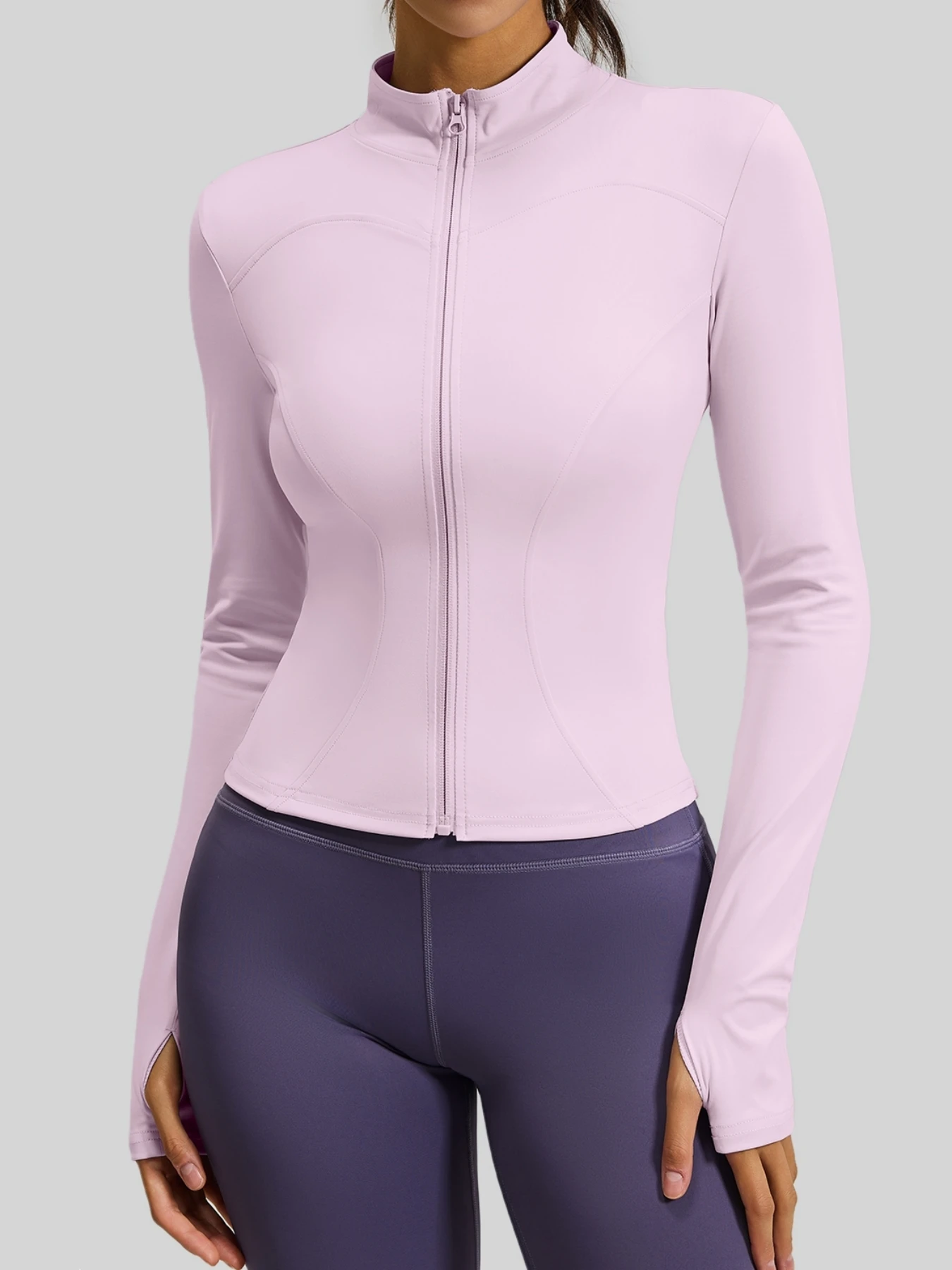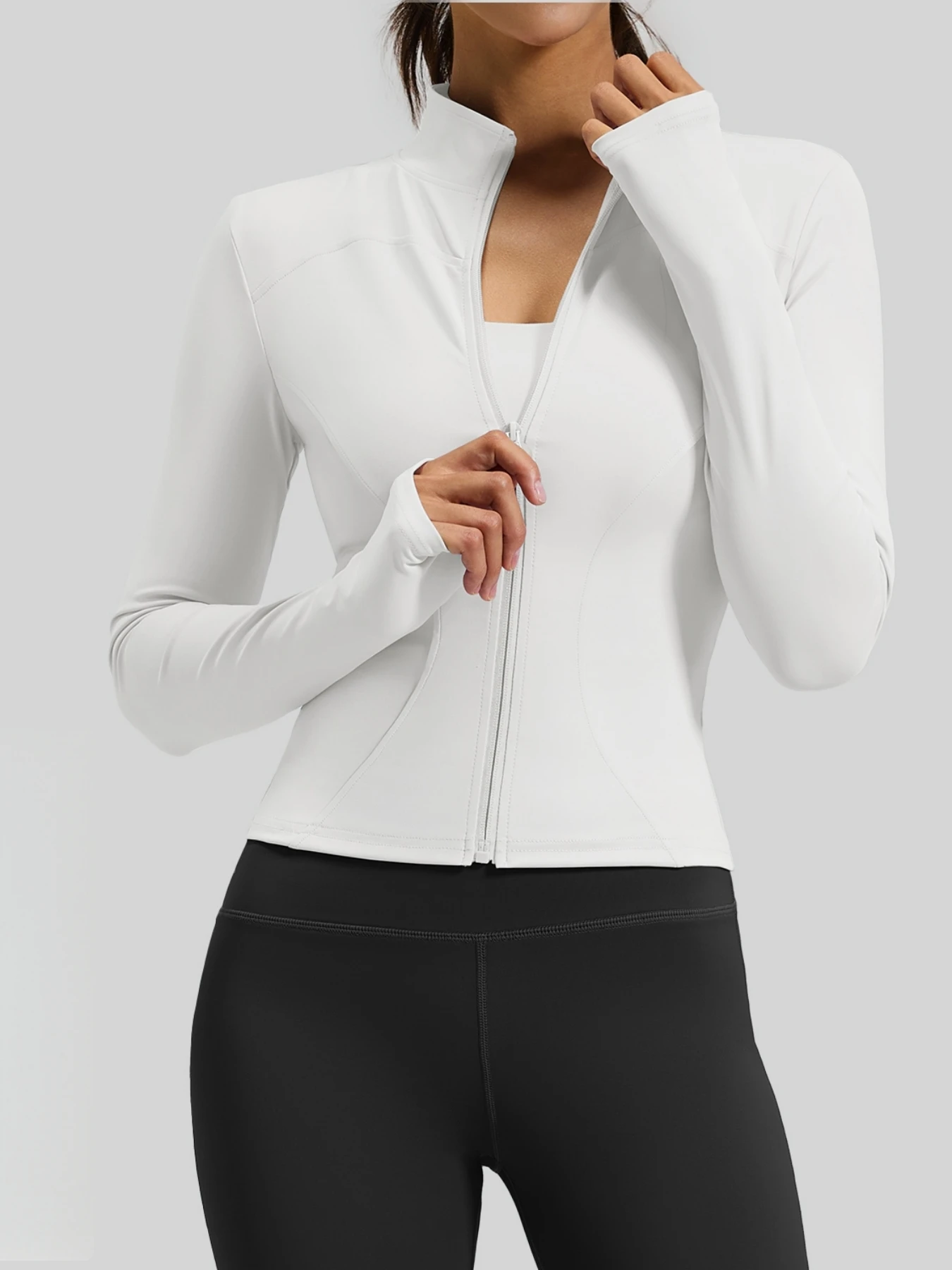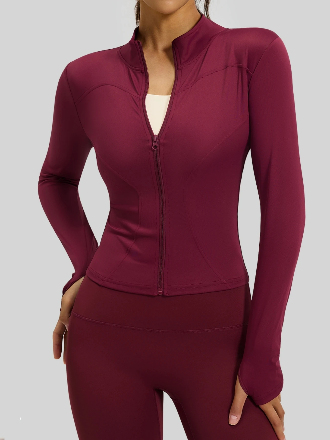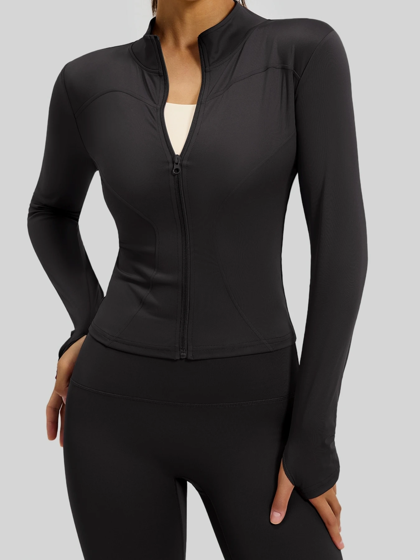Women’s Zip-Up Sports Jacket with Stand Collar – Slim Fit Activewear for Yoga, Running & Training