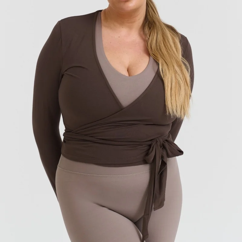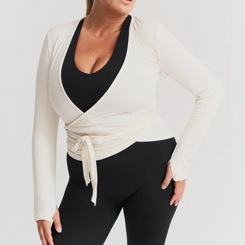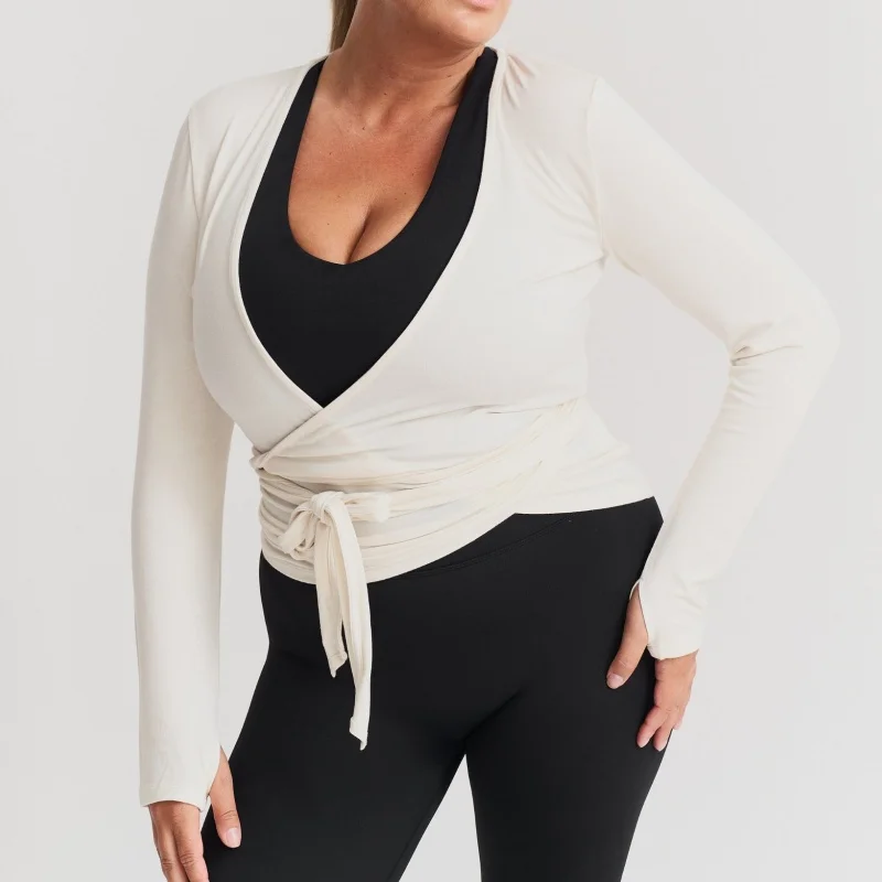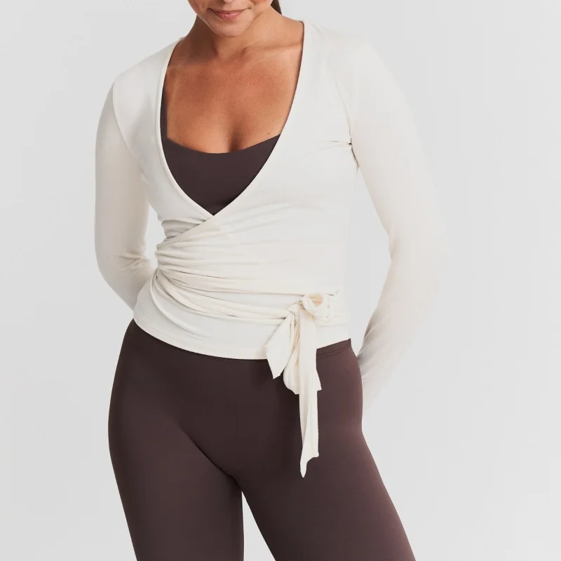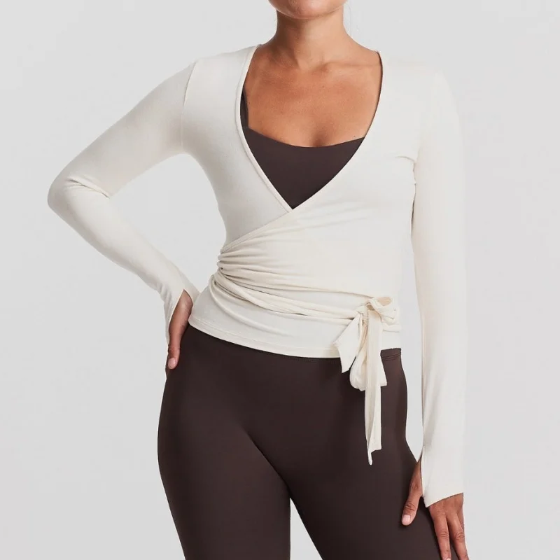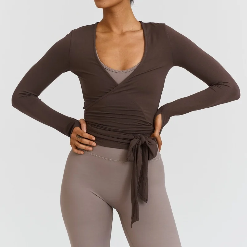 Women’s Ballet Wrap Top – Long Sleeve Tie-Front Slim Crop Shirt for Yoga, Pilates & Dance