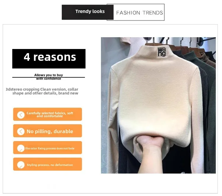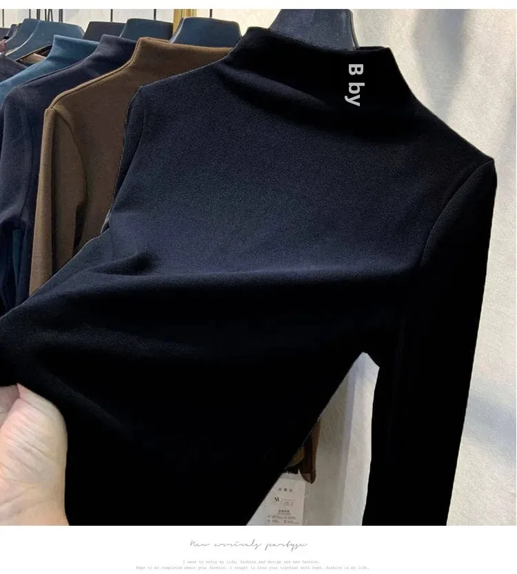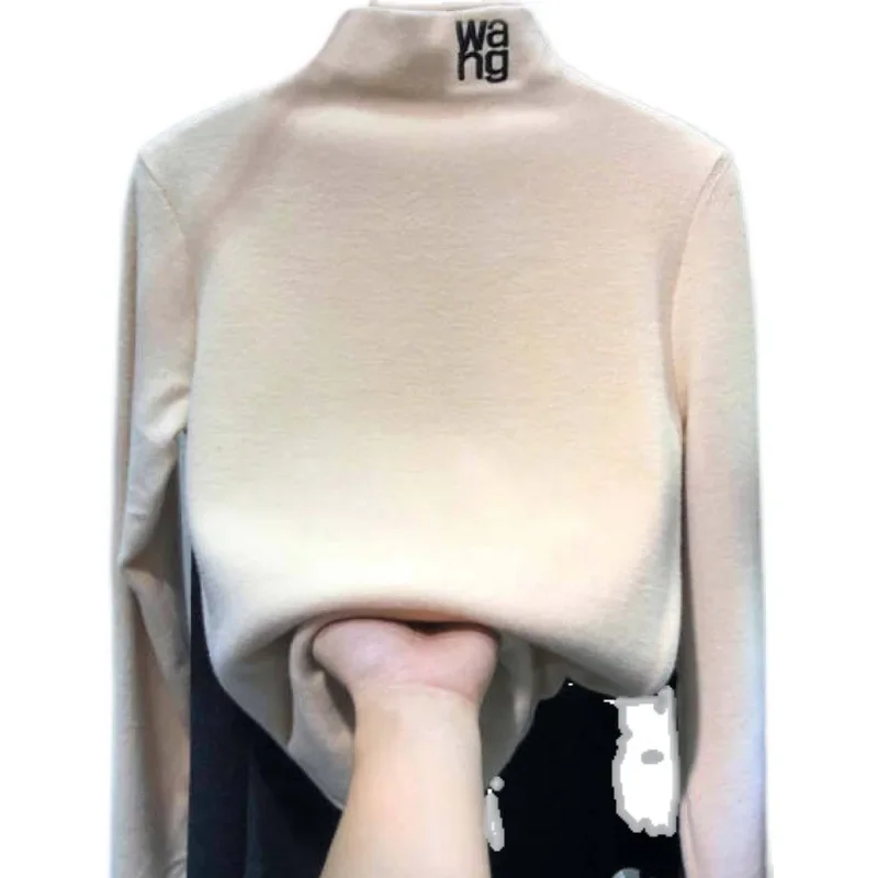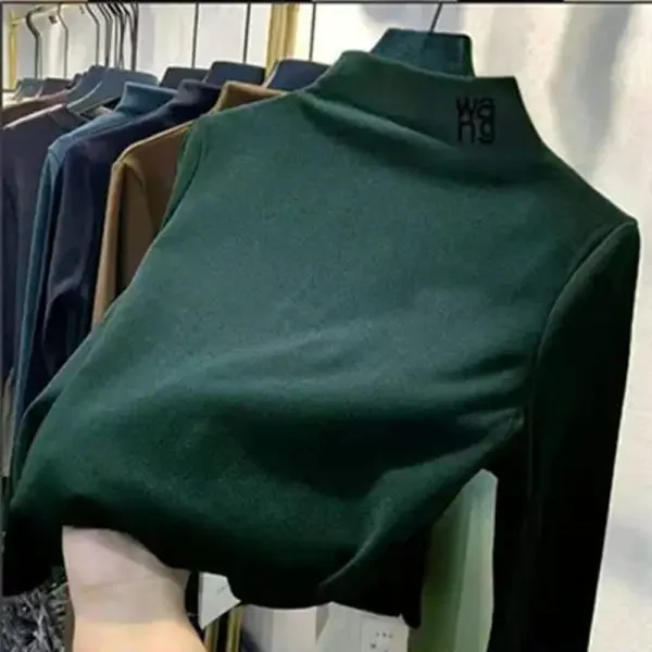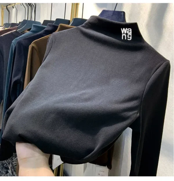 2023 Autumn/Winter Women's Embroidered Velvet Polo Turtle Neck Base Layer Topsanding Long Sleeved T-Shirt Elegant Inner Top