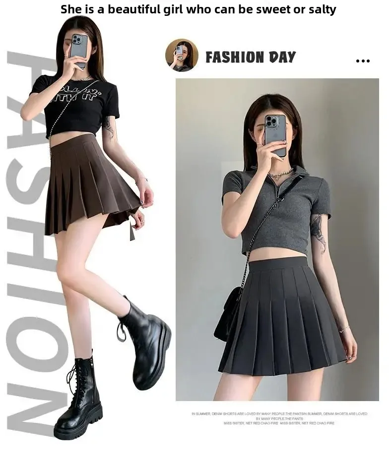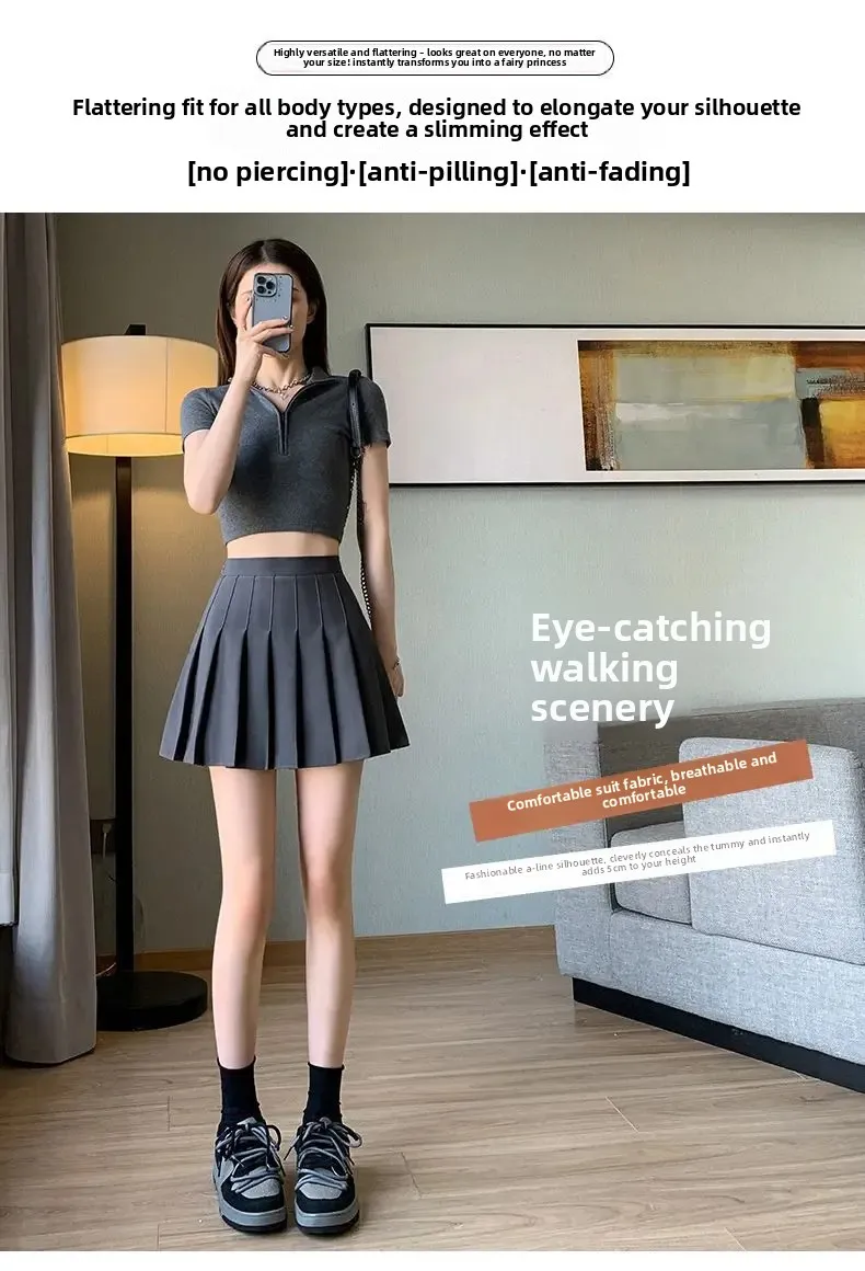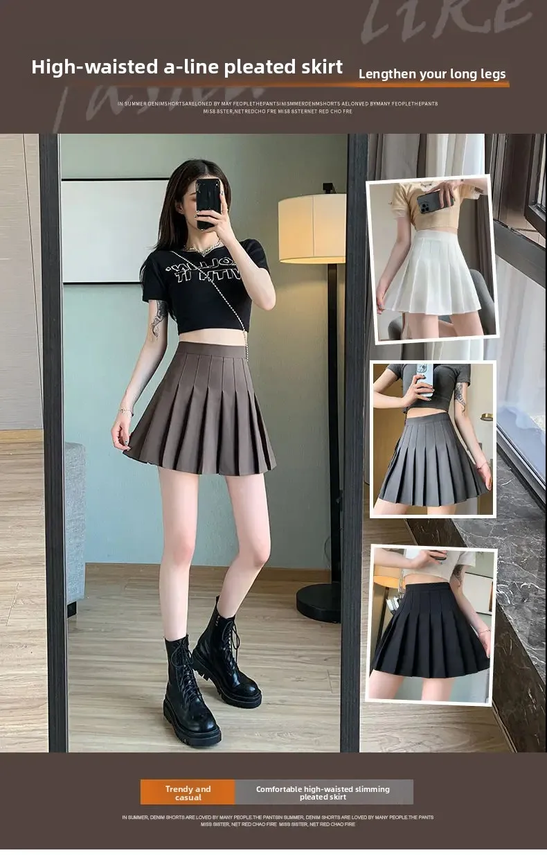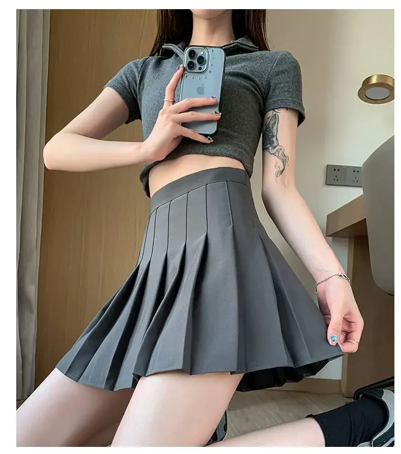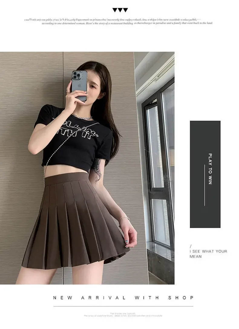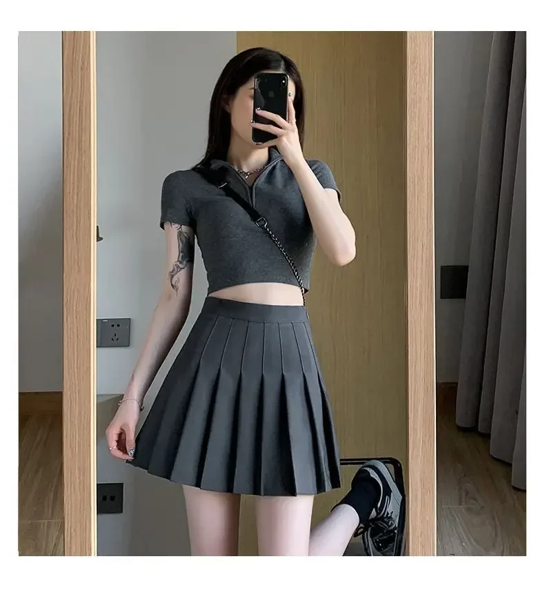 School Uniform Style Shirt Dress Mini Skirt for Women Single Piece Set A- Line Pleated Skirt Spring Summer Autumn Winter
