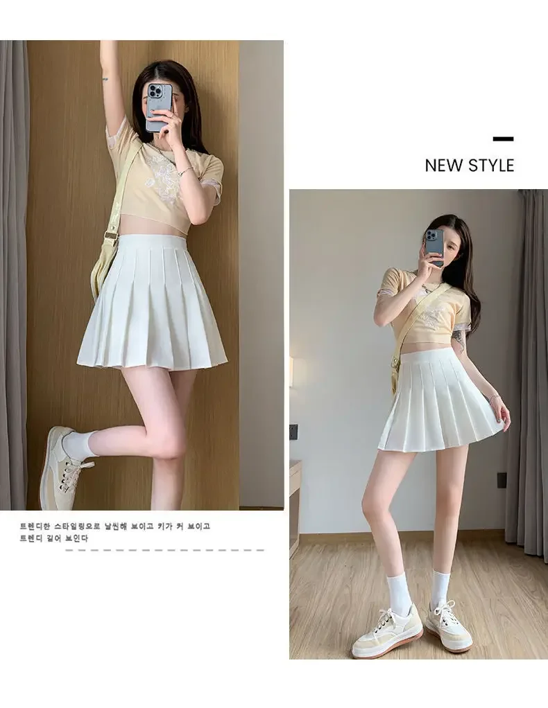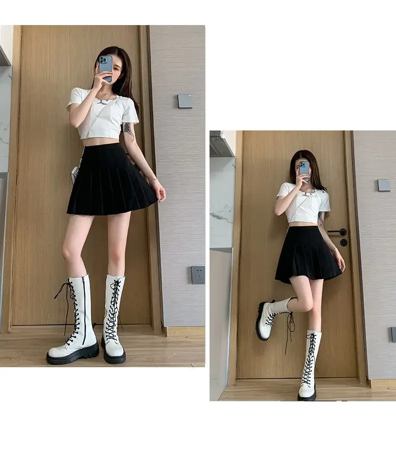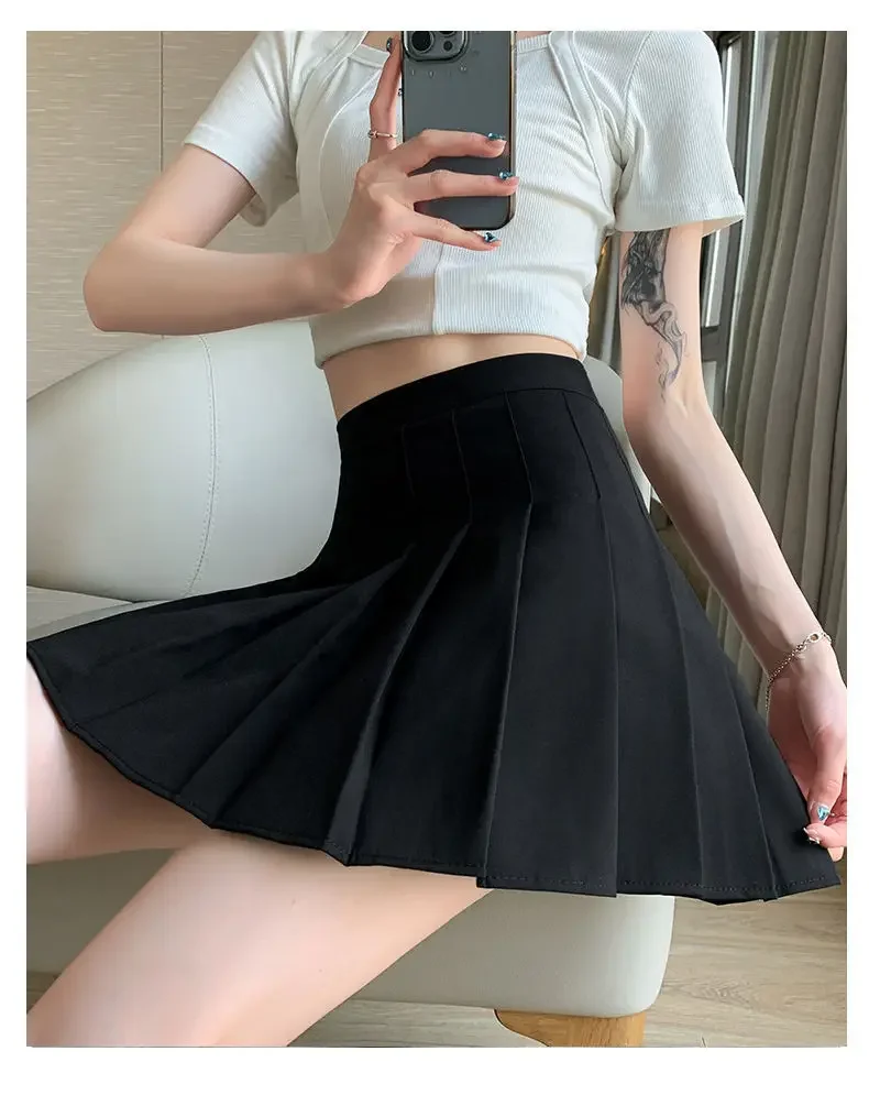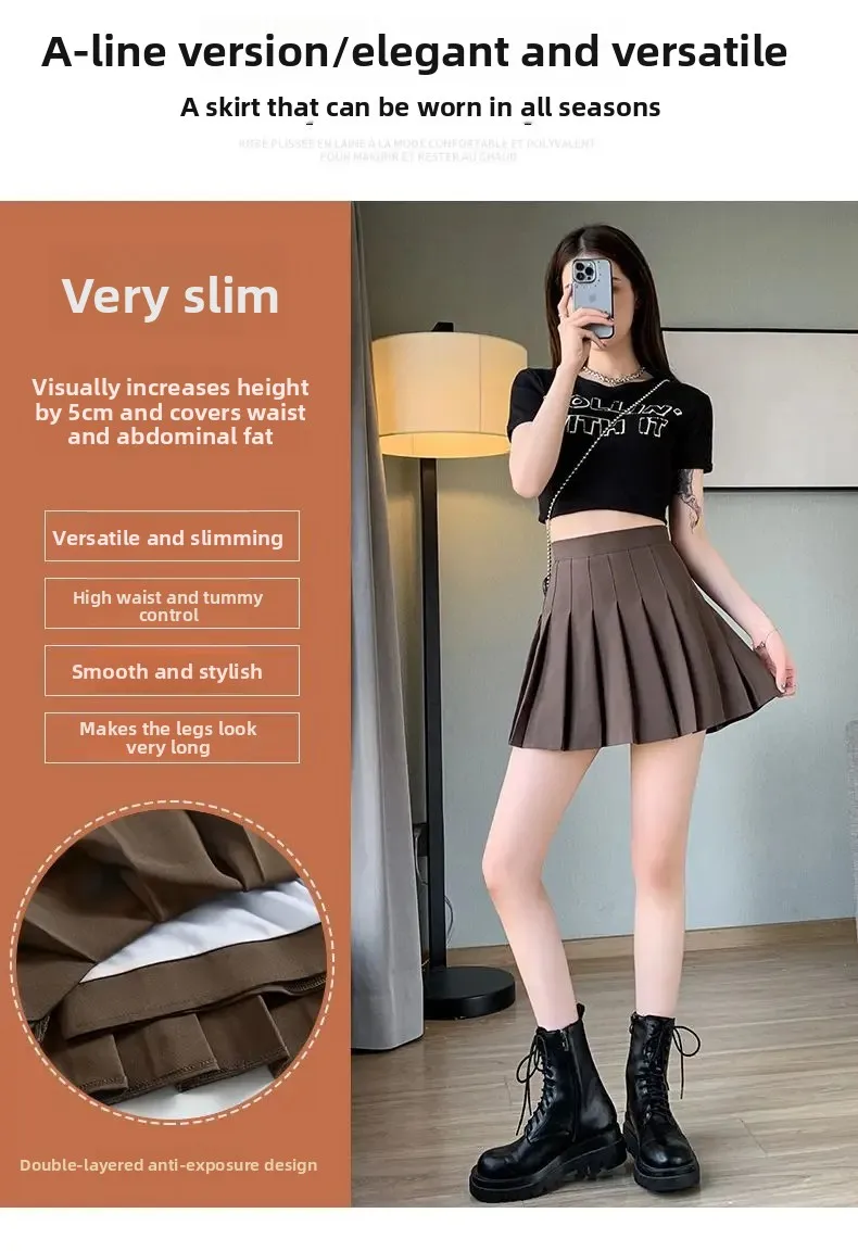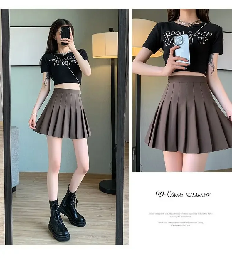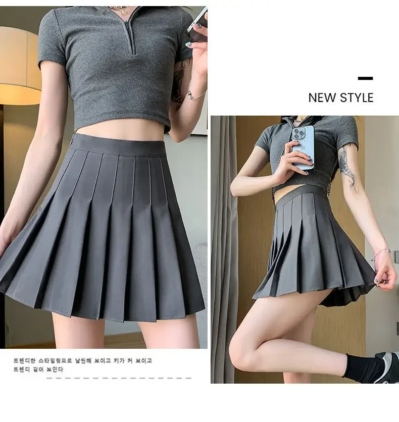 School Uniform Style Shirt Dress Mini Skirt for Women Single Piece Set A- Line Pleated Skirt Spring Summer Autumn Winter