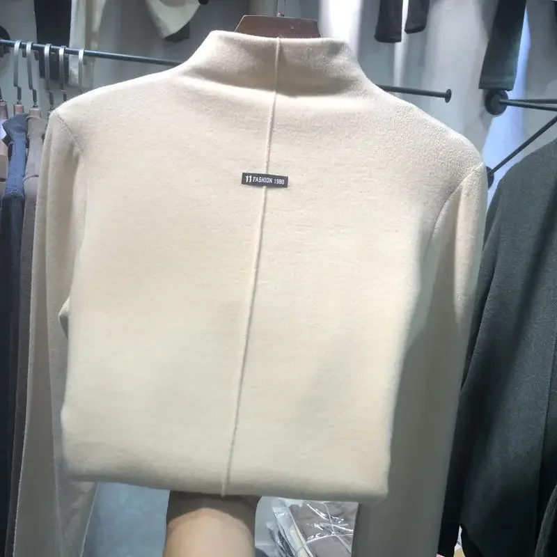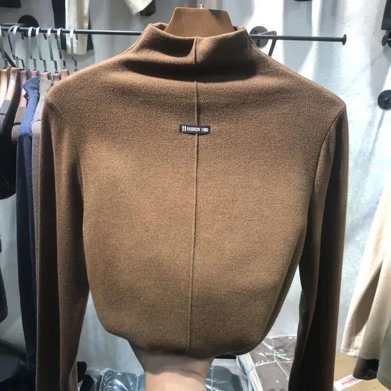 Slim Fit Long Sleeve Base Layer Shirt Half High Collar T-Shirt Women's Fashionable Korean Style Autumn Winter Thermal Top