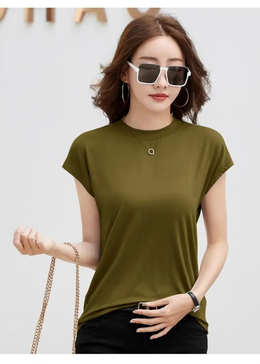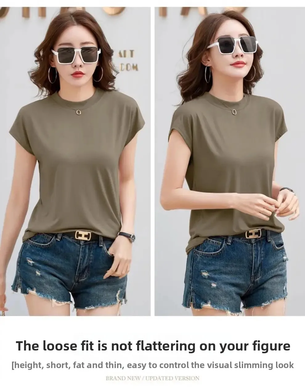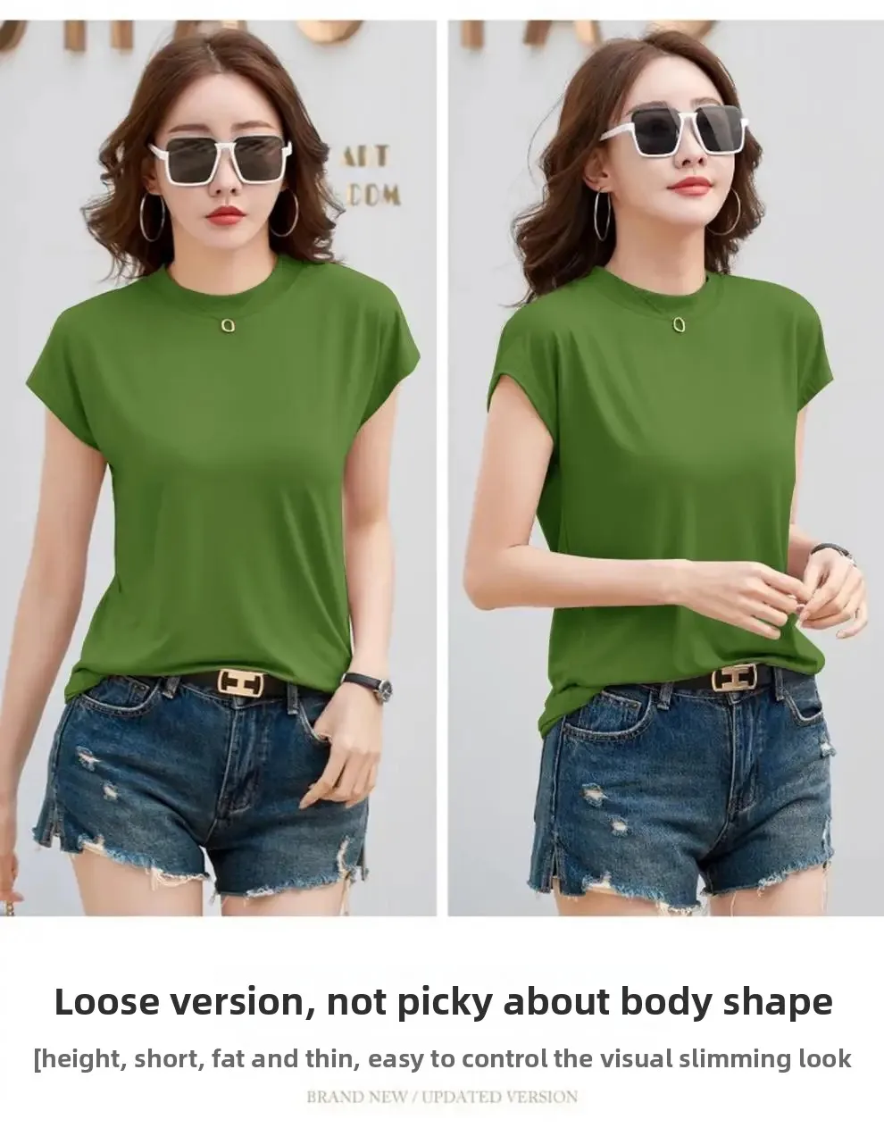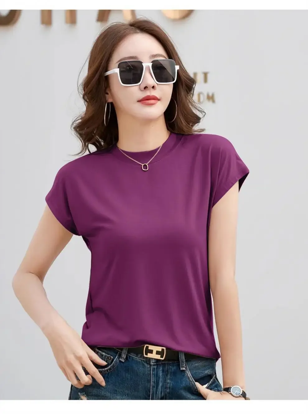 Summer Short Sleeve T-Shirt Women's Loose round Neck Slimming Breathable Top Versatile Shoulder Fit Small Fly Sleeve Design