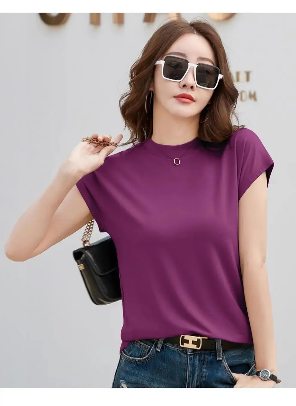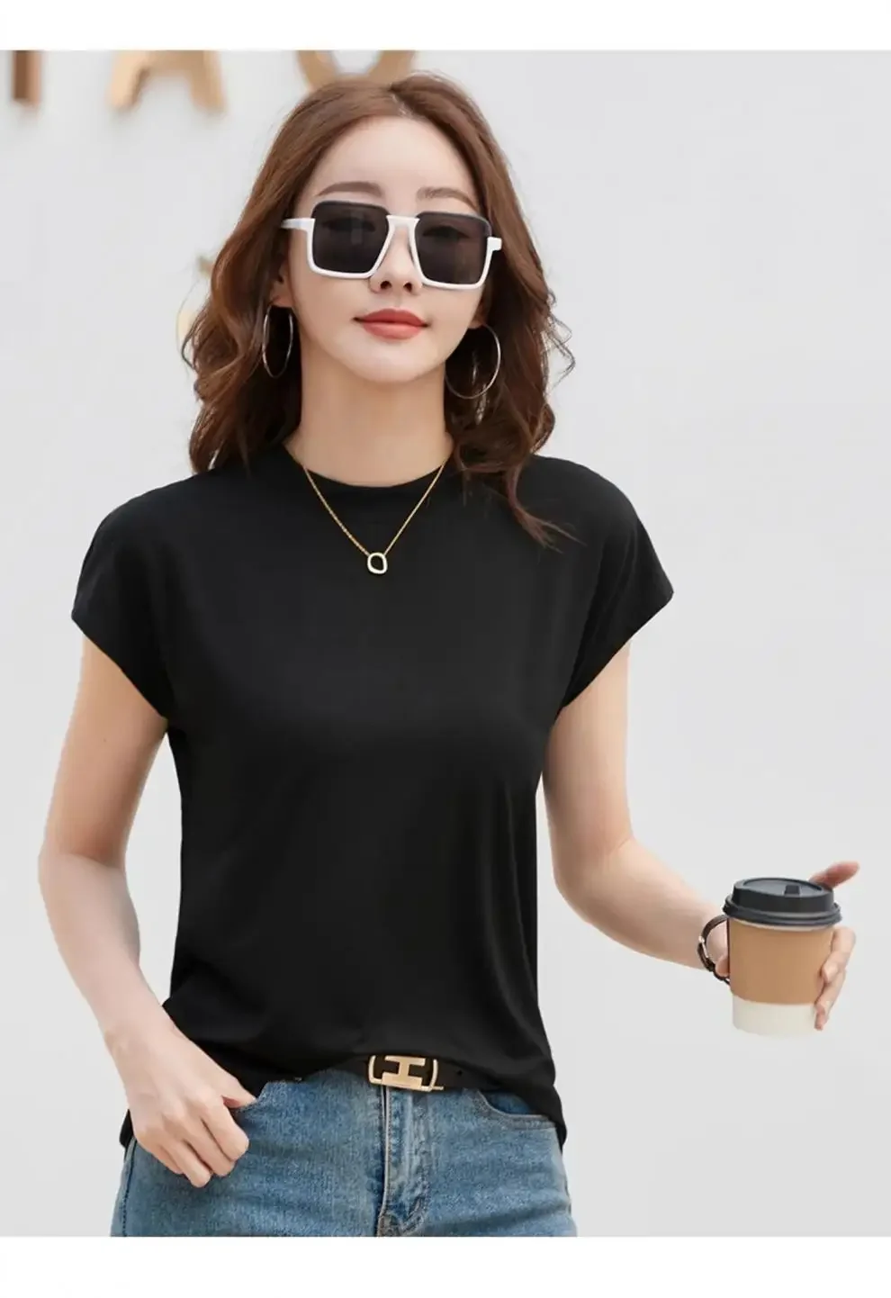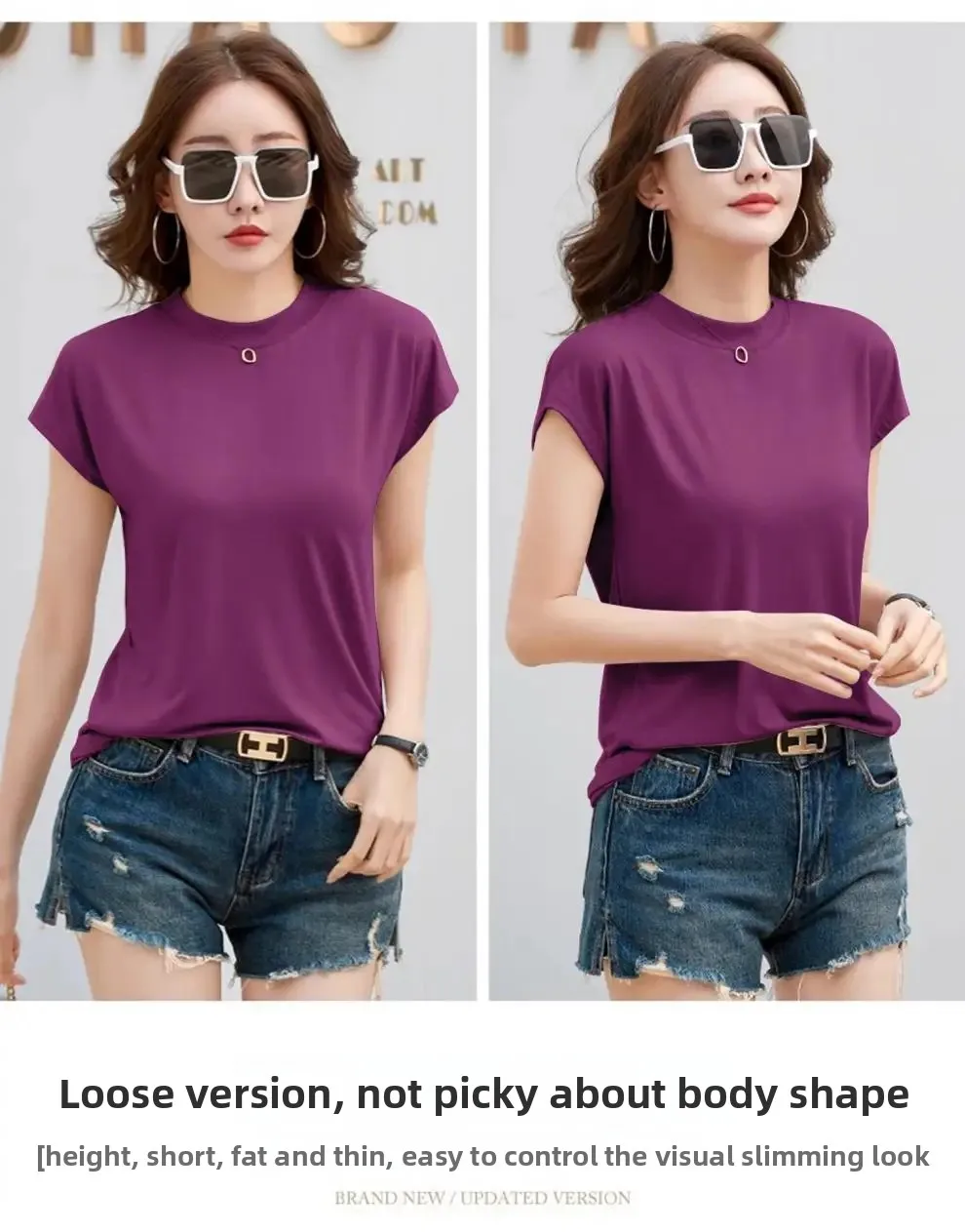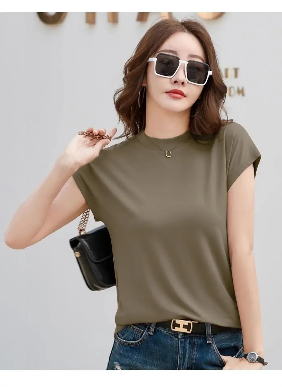 Summer Short Sleeve T-Shirt Women's Loose round Neck Slimming Breathable Top Versatile Shoulder Fit Small Fly Sleeve Design