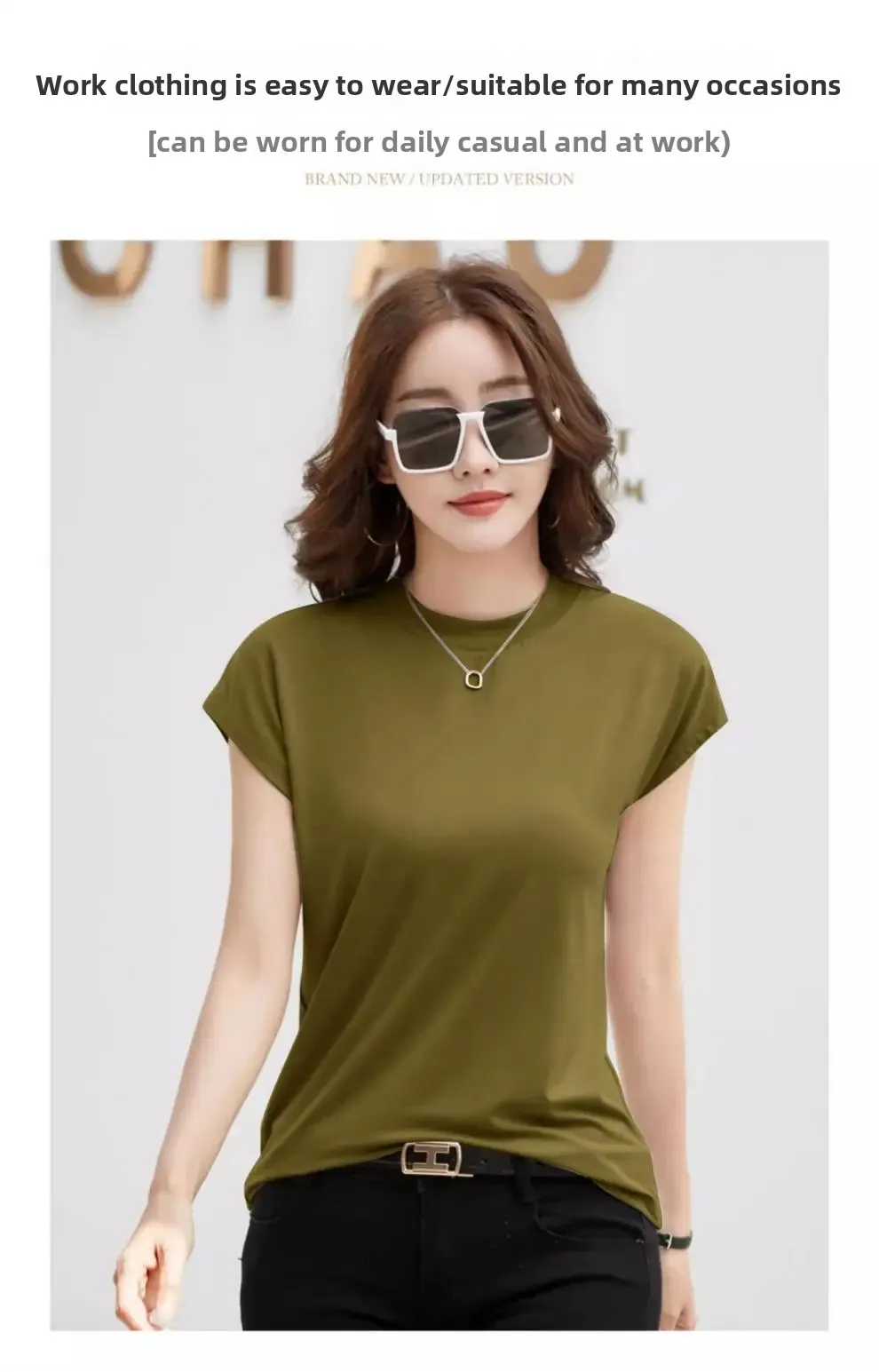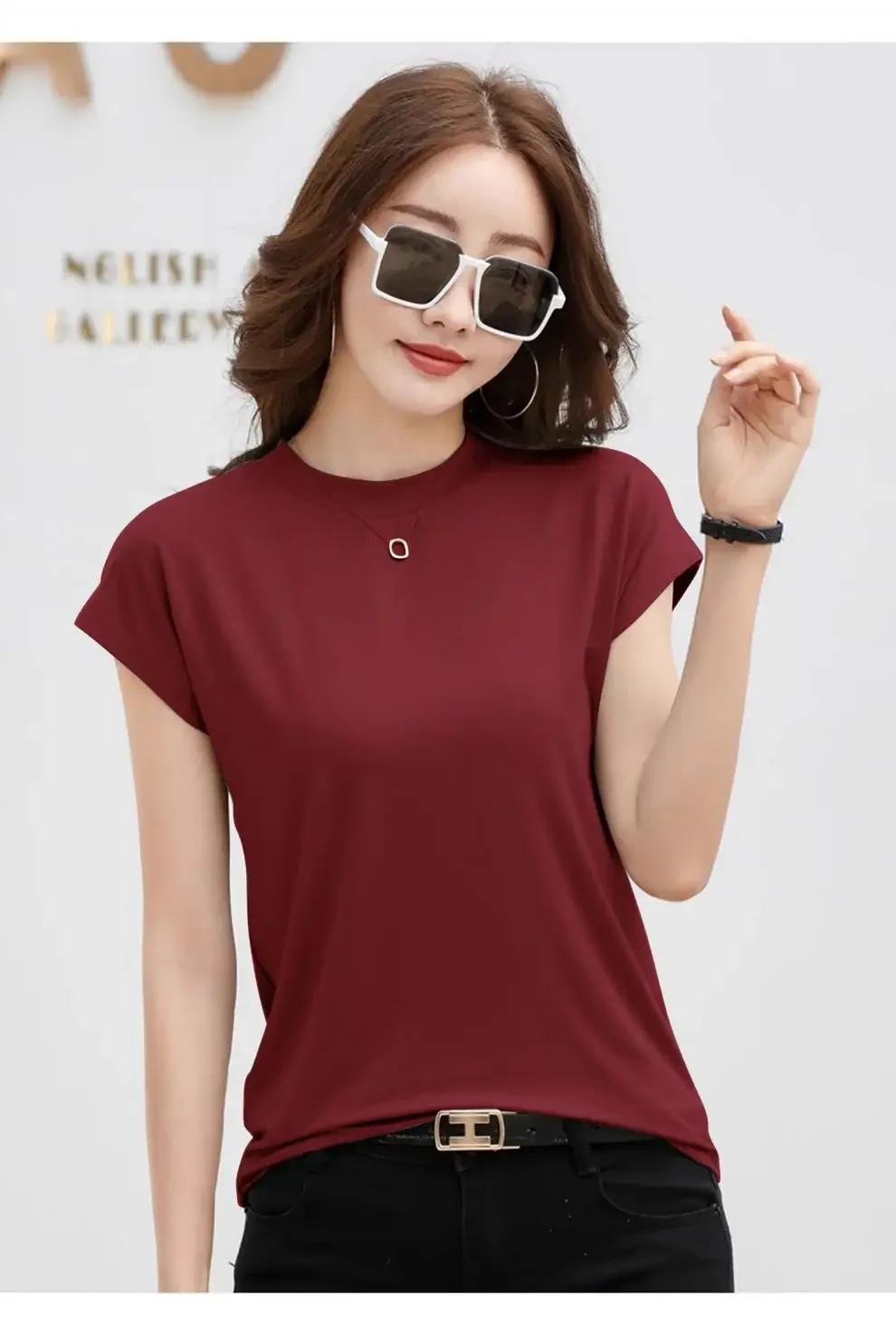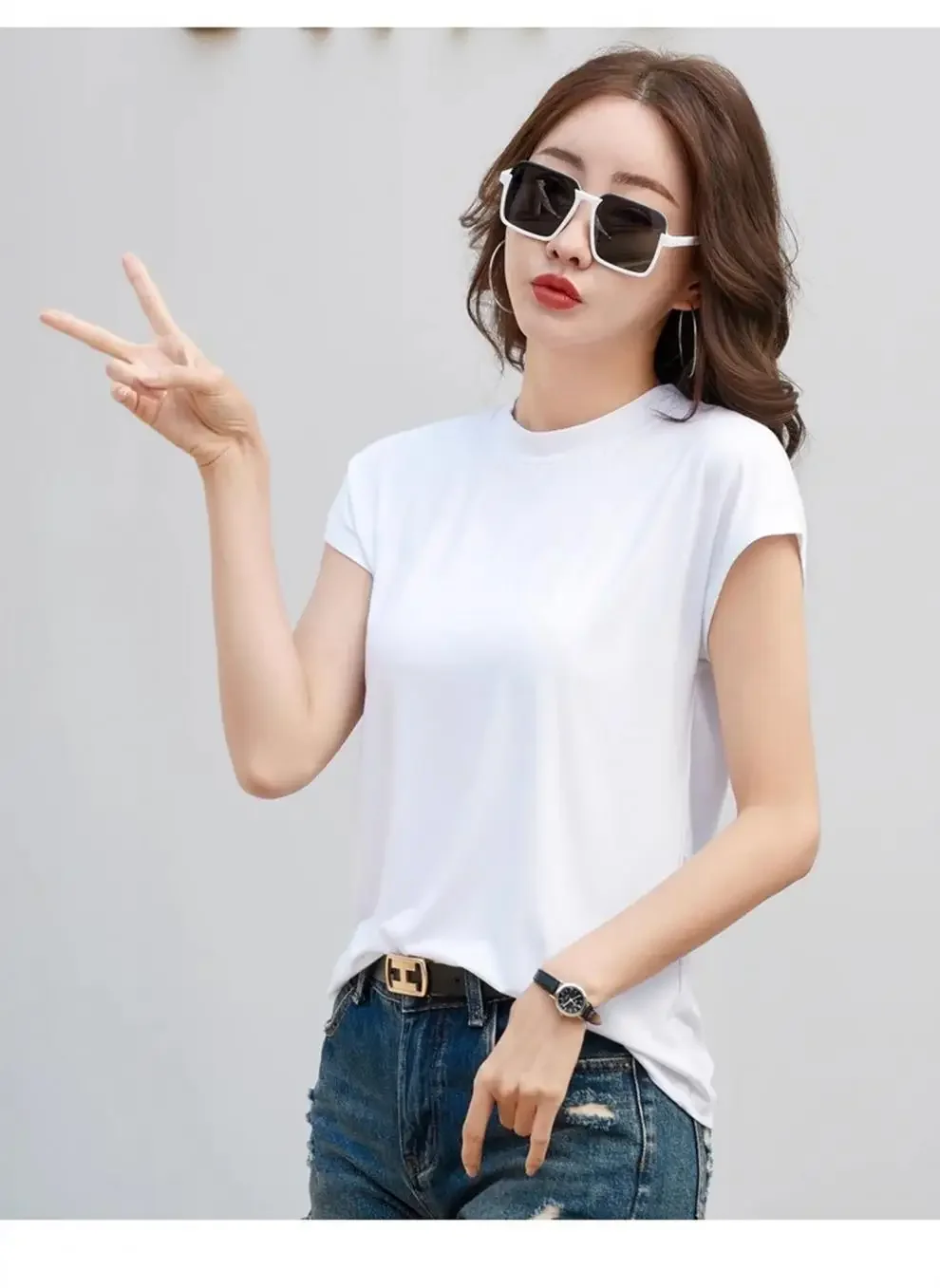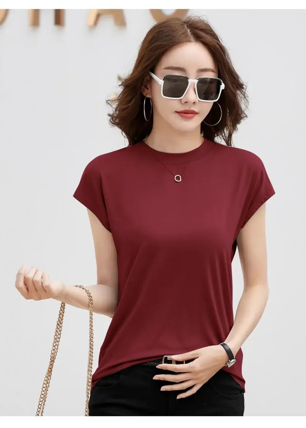 Summer Short Sleeve T-Shirt Women's Loose round Neck Slimming Breathable Top Versatile Shoulder Fit Small Fly Sleeve Design