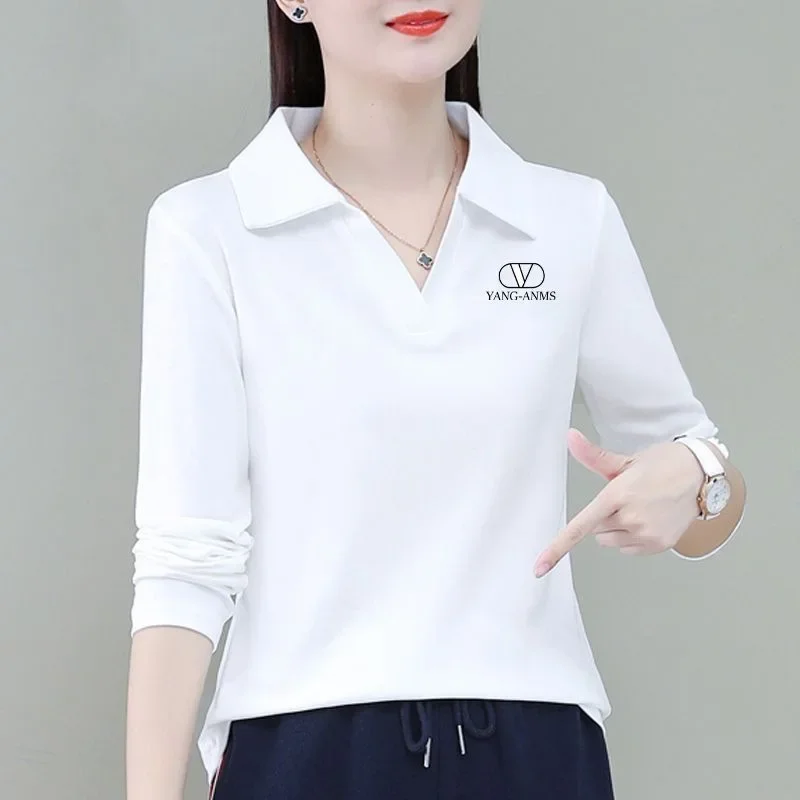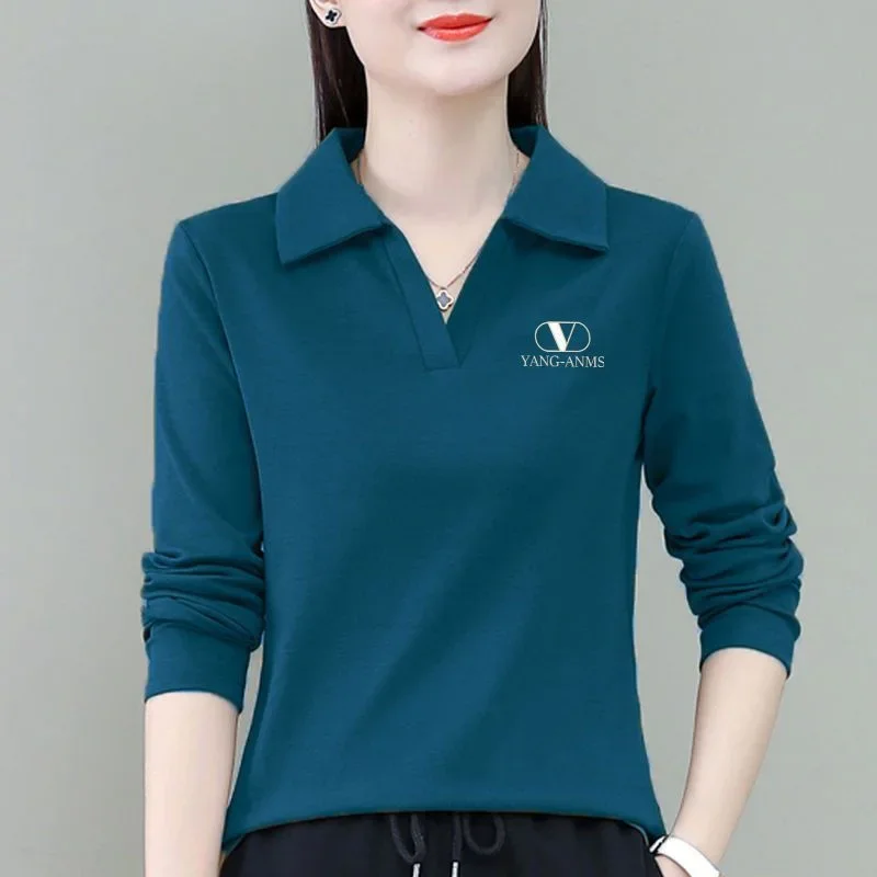 Women's Long Sleeve Polo Neck Base Shirt Inner Wear Spring Autumn Pure Color T-Shirt Outerwear Mom's Fashion Top